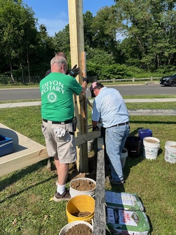 Our Day of Service was to maintain and repair the Rotary Pavilion at Walnut Beach. President Don Anderson III, rallied the club members on Wednesday, June 26. We pulled nails and staples from the wooden beams and posts, as well as the ceiling of the pavilion. We also installed new posts for banner placement at the entrance to Walnut Beach.